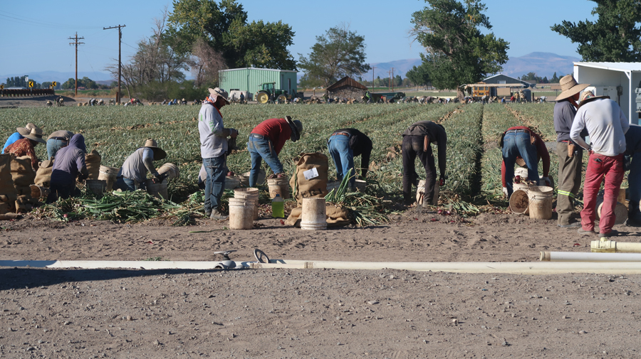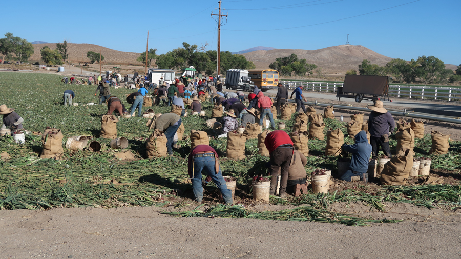 I took these photos of migrant workers outside of Yearington NV. They were starting to harvest a field of red onions. Another group was working back toward them from the opposite side of the field.
