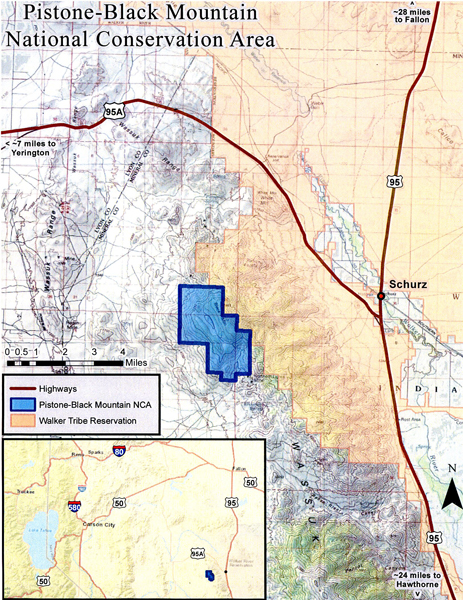 9/22 M – My first stop was the Carson City District Office of the BLM. I spoke with at least three employees asking about two new BLM National Conservation Areas (NCAs) outside of Carson City. I collected information and purchased a BLM map for Walker Lake (2006), which shows the location of Black Mountain. A BLM employee drew the location of the Pistone-Black Mountain NCA on this map. I was also given written directions to find the 4WD route to Black Mountain (3,941ft).