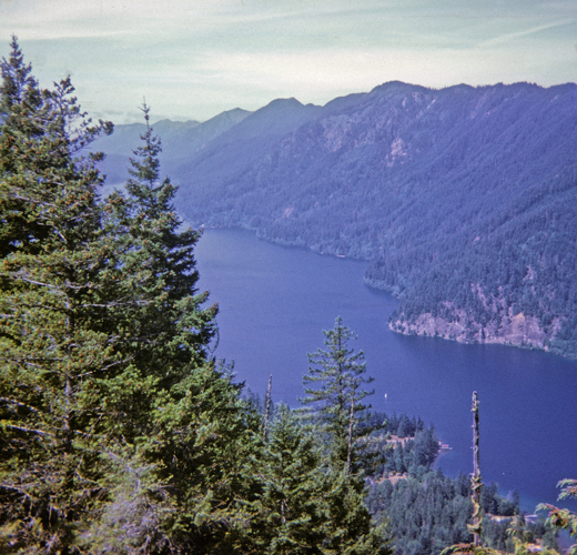 Lake Crescent is located in the N of the park. H & T had a beautiful tent campsite there in 1969. Storm King Mountain (4,534ft) is located just east of the lake, this photo is from 2025.