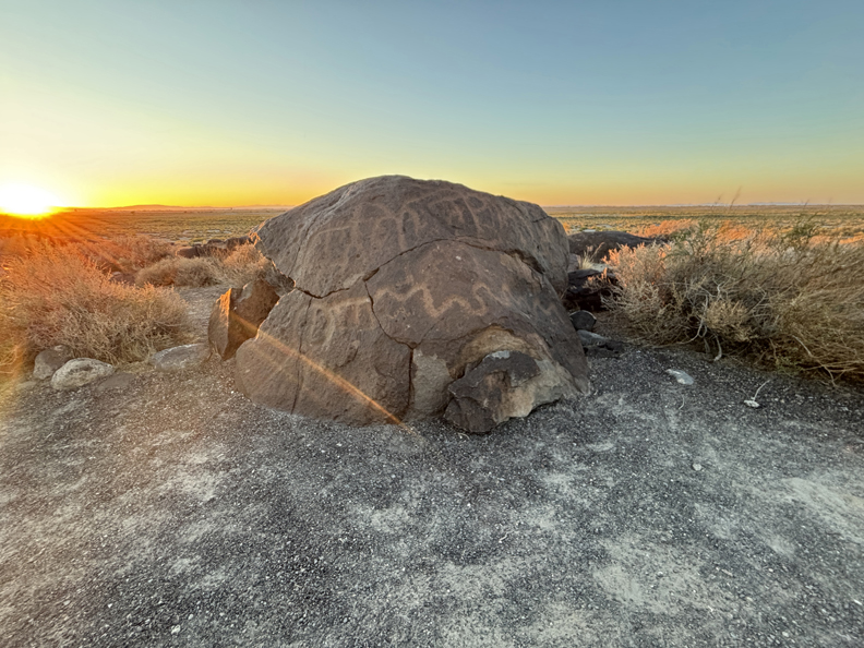 “Some petroglyphs show animals and humans, others form unique designs with lines. Visitors can also find petroglyphs in the “pit and grove” style, featuring groups of circular pits and long, narrow grooves. This technique is the oldest known style of rock art.”