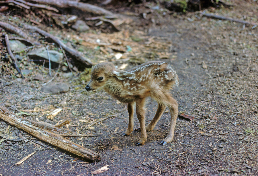 In the end, the snow was too deep and we aborted our mission. On the way back we came across a newly born fawn. We DID NOT touch it because then the mother would abandon the child.