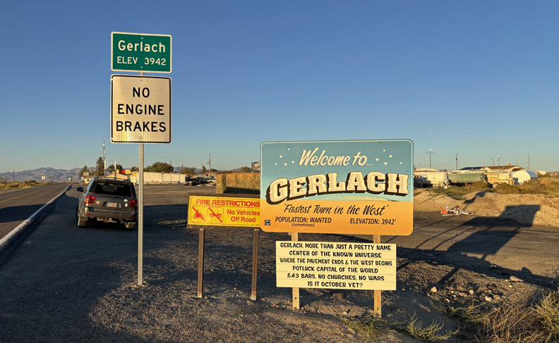 9/23 Tu – coffee and donuts from a gas station, then a four-hour drive to Gerlach in the NW corner of NV.