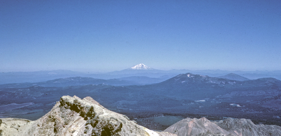 Mt Adams left, Mt Hood center, Mt St Helens right