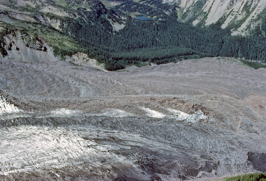 Toe of the Winthrop Glacier, moraine, and Mystic Lake