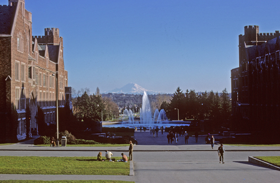 We met Bob and Sue from New Zealand on this hike; they became our lifelong friends. They were living in Tacoma at that time but then moved to an apartment complex on Mercer Island, right next to ours! Bob was a doctor on a grant at the U of W. He specialized in the cause and treatment of pain and was also a spelunker (explores caves). Here is a photo of my favorite mountain from the U of Washington.