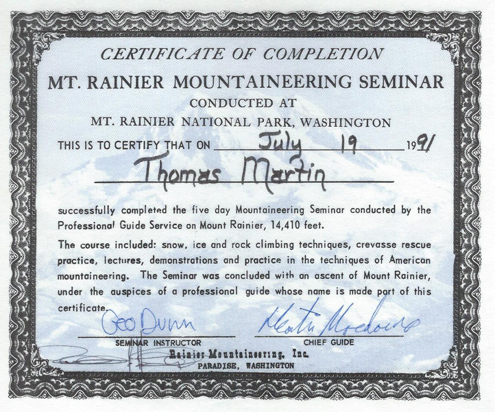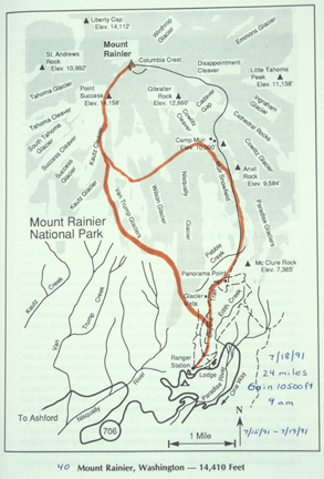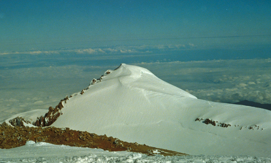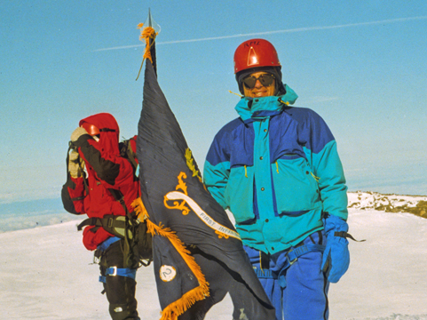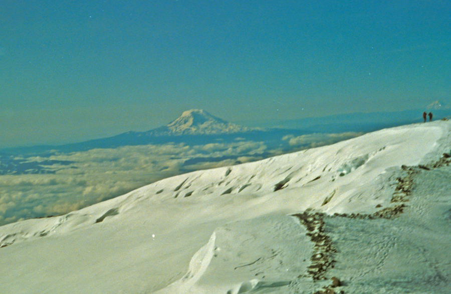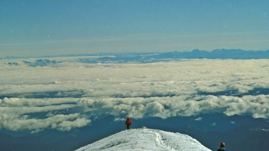 Reached the summit, Columbia Crest 14,410ft, of Mount Rainier at 9am on July 18, 1991. I had a teammate take the obligatory summit photo.