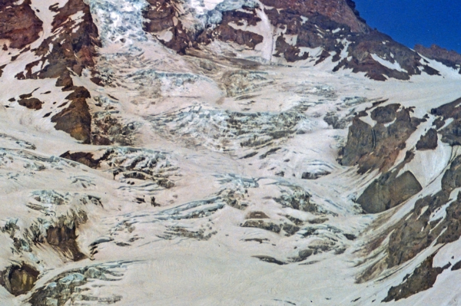We hiked the Wonderland Trail to a point overlooking the Winthrop Glacier. The photos follow the glacier from its origin to its terminal moraine.
