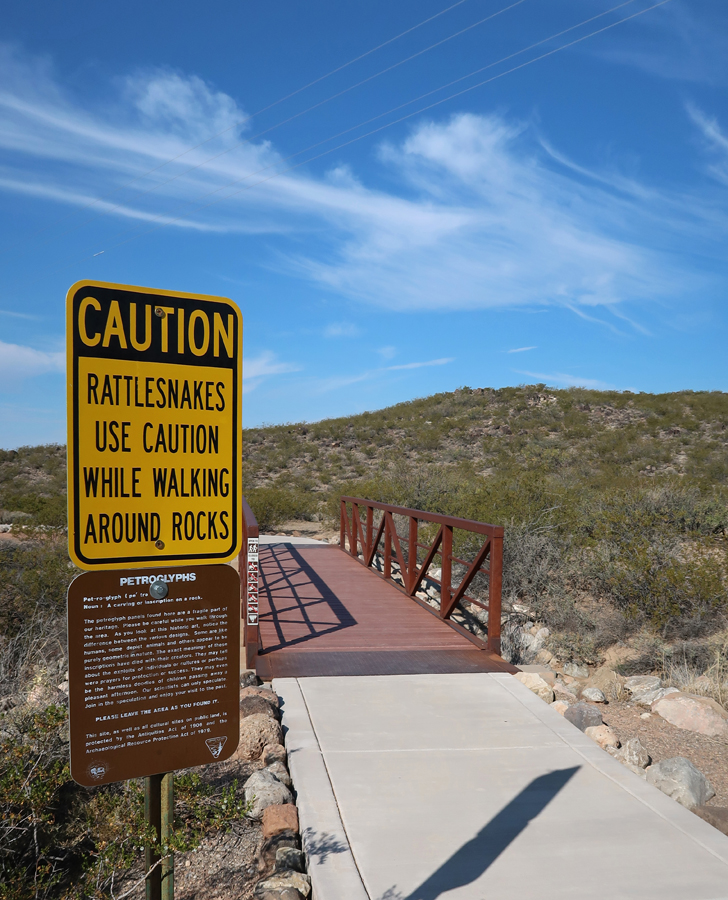 The remains of a Mogollon village is near the parking lot. It is thought that the inhabitants of the village created the rock drawings more than six hundred years ago.