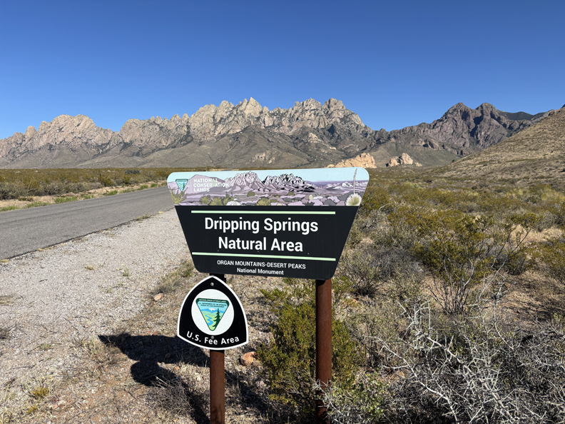 Next stop, Organ Mountains-Dessert Peaks NM (BLM) near Las Cruces NM. In 2018, Helen and I hiked West Trail up to Baylor Pass in the northern part of the NM. I then did the La Cueva Rocks Trail near the Visitor Center – see Blog for January 2018.
