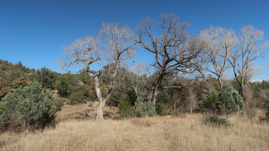 Description – “Trail is 2.5mi loop running up the river from the trailhead. There are cottonwood, walnut, and oak trees. . . The trail passes up and downhill over and along natural contours, including a primitive bridge, loose rocks, and some rocky segments that require rock scrambling.”