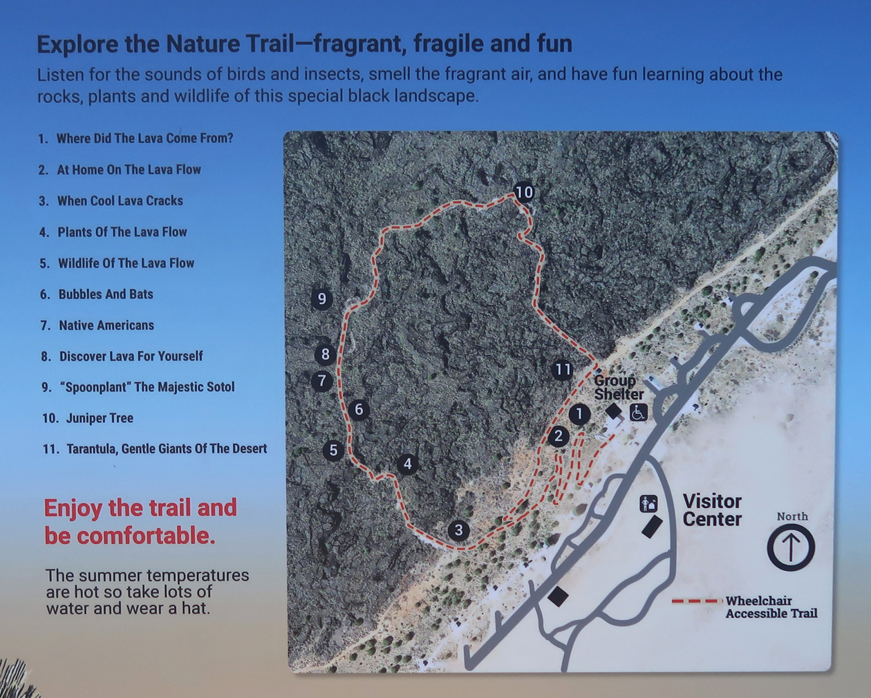 I did the 1-mile, self-guided, paved Malpais Loop Trail –