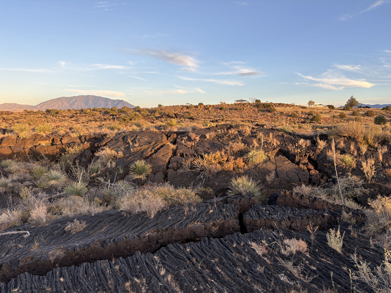 The Carrizozo Lava Flow, over the Tularosa Basin, is 44-miles long, 4 to 6-miles wide, and 160ft thick in the center. Lava folds –