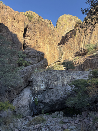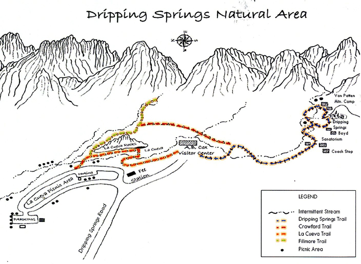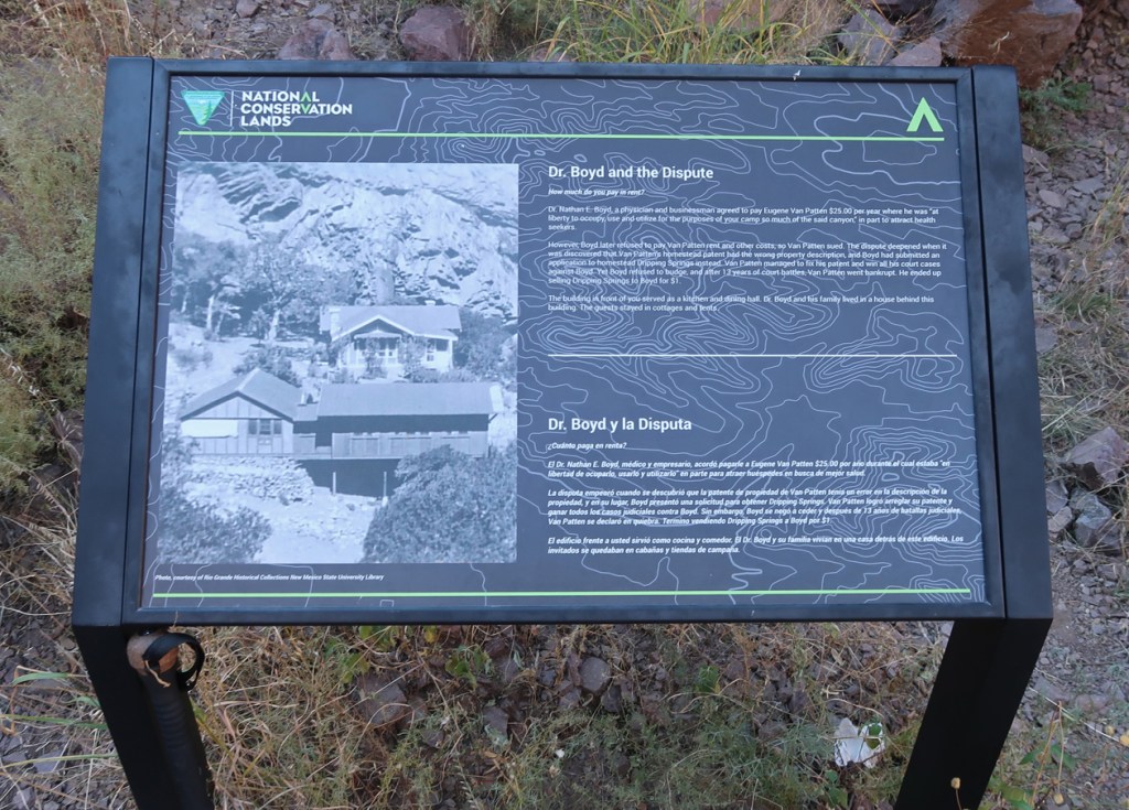 I did the 3-mile rt Dripping Springs Trail that ascends 600ft to the Van Patten Mountain Camp, Dripping Springs, and Boyd’s Sanatorium.
