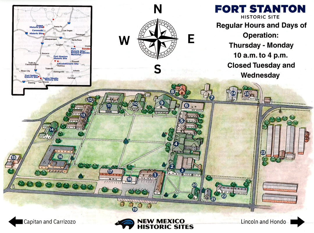 This fort was built to protect settlers and guard the El Camino Real de Tierra Adentro Trail between Mexico City and Sante Fe. Note, Fort Stanton is also included on this map.