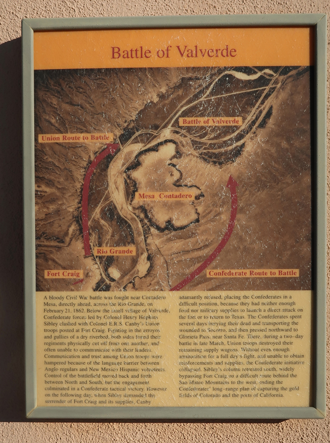 In 1862, a Confederate force won a battle here on their way to Glorieta Pass near Sante Fe where they were defeated and retreated south. The Confederate objective was to take the gold fields in CO and the ports in CA. If they had captured the U.S. mint in Denver, it could have changed the outcome of the Civil War.