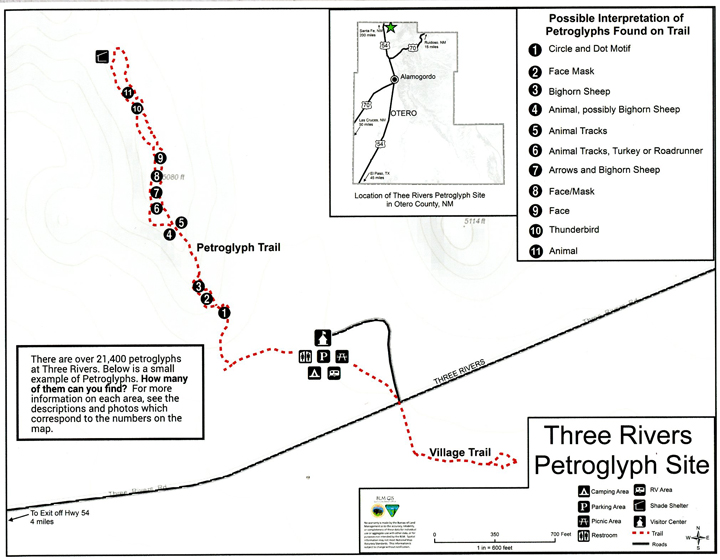 An hour drive north on US-54 got me to the BLM Three Rivers Petroglyph Site.