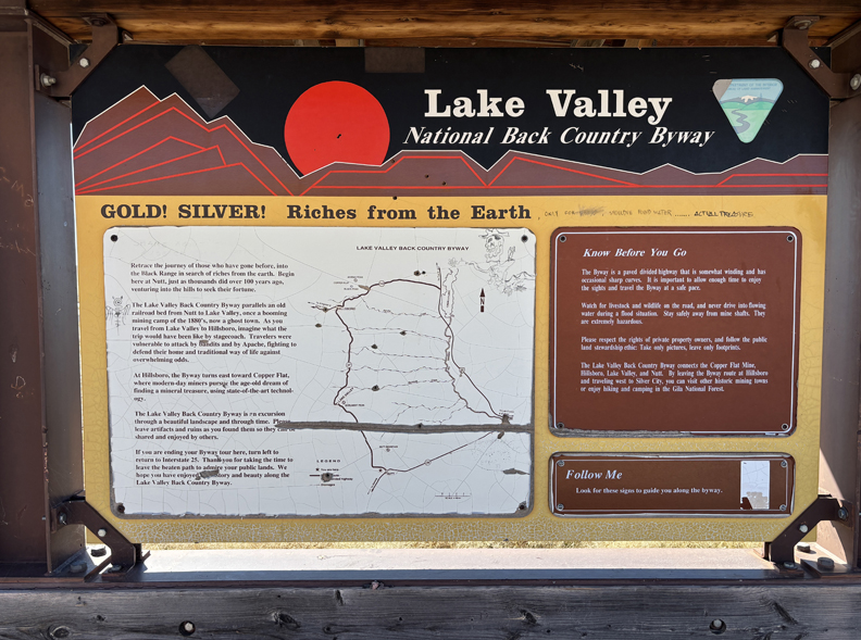 I continued S on I-25 to CR-152 W where I started on the Lake Valley National Back Country Byway to the Lake Valley Historic Townsite. See left middle of map –