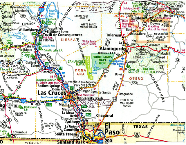 11/13 Th – left at 7am in order to get to a Subway in Alamogordo NM at 8:30a when they opened. I bought a foot long Chicken Teriyaki Sub, so as to have an easy lunch for the next two days. Four of my six destinations are indicated on this map.