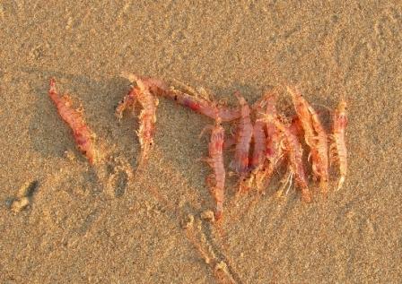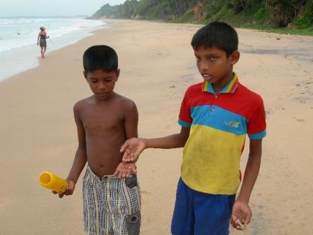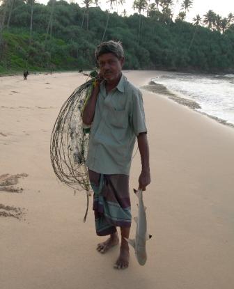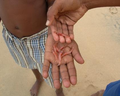 Today we had a few new things on the beach; seems we have something new everyday!! Often we meet fishermen carrying their inner tubes and nets; yesterday one had caught a lobster, today it was crabs.